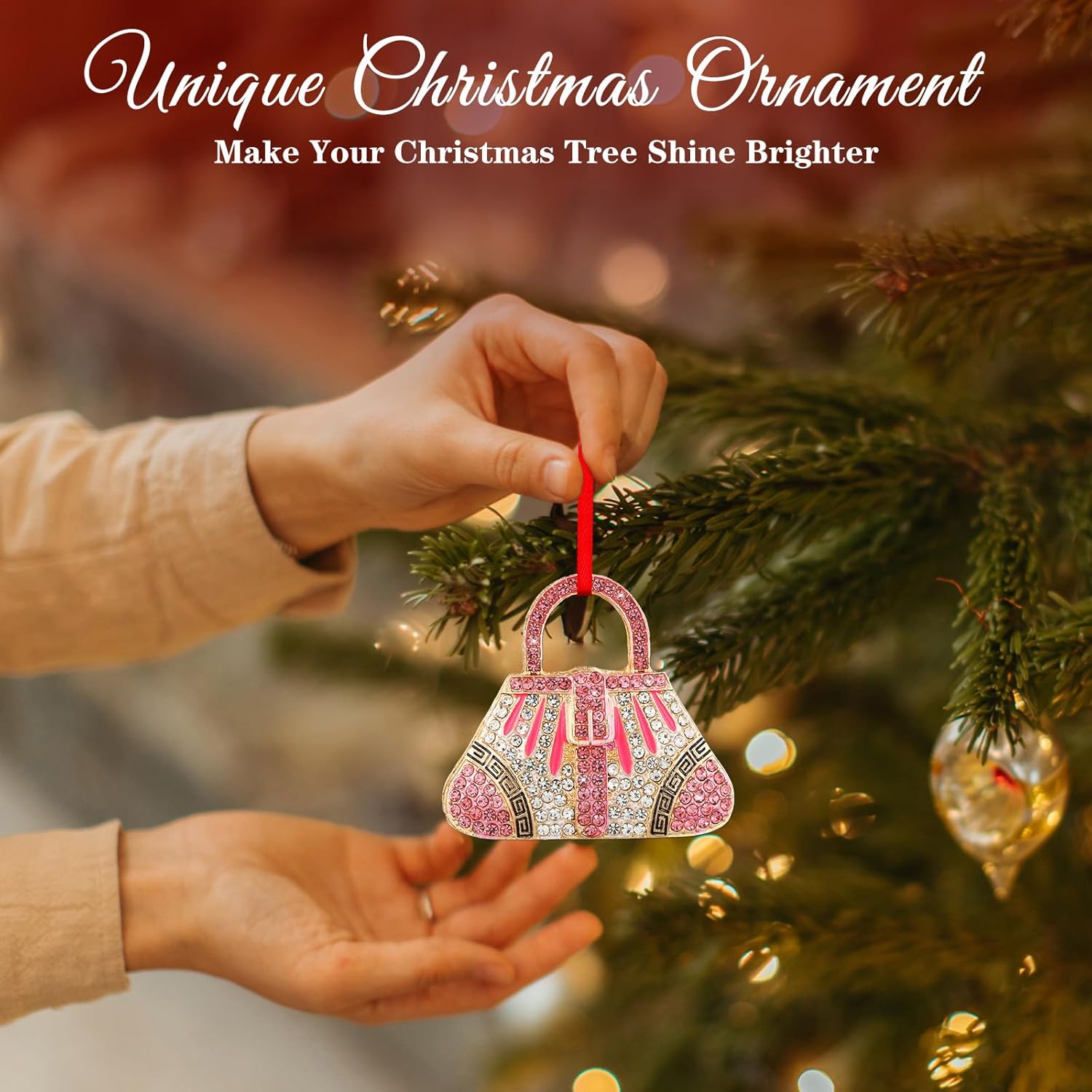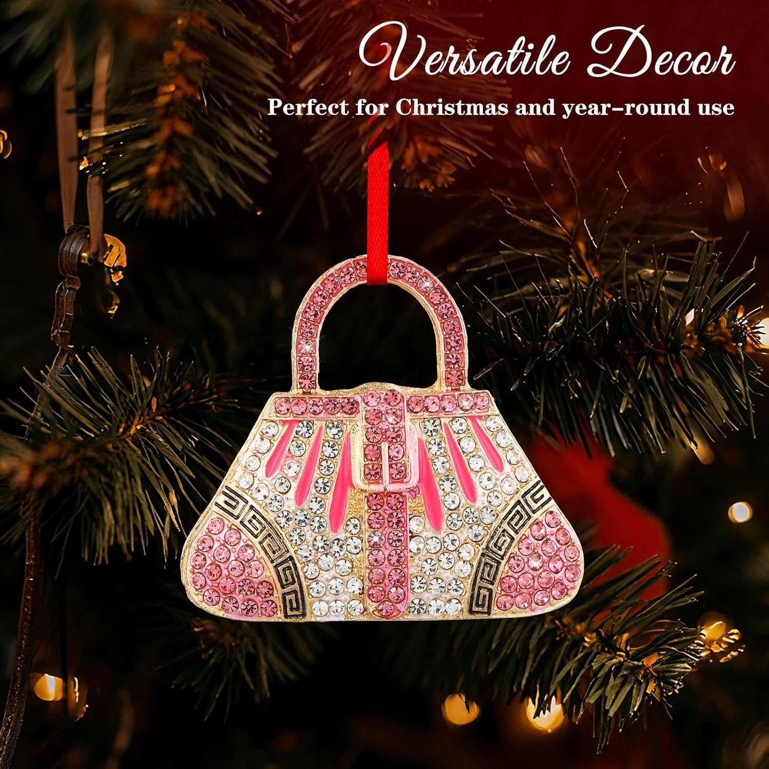 【Enjoy Long-Lasting Beauty】: Made from durable metal and adorned with sparkling rhinestones, this handbag Christmas ornament showcases exquisite craftsmanship, ensuring it remains a beautiful keepsake for years.