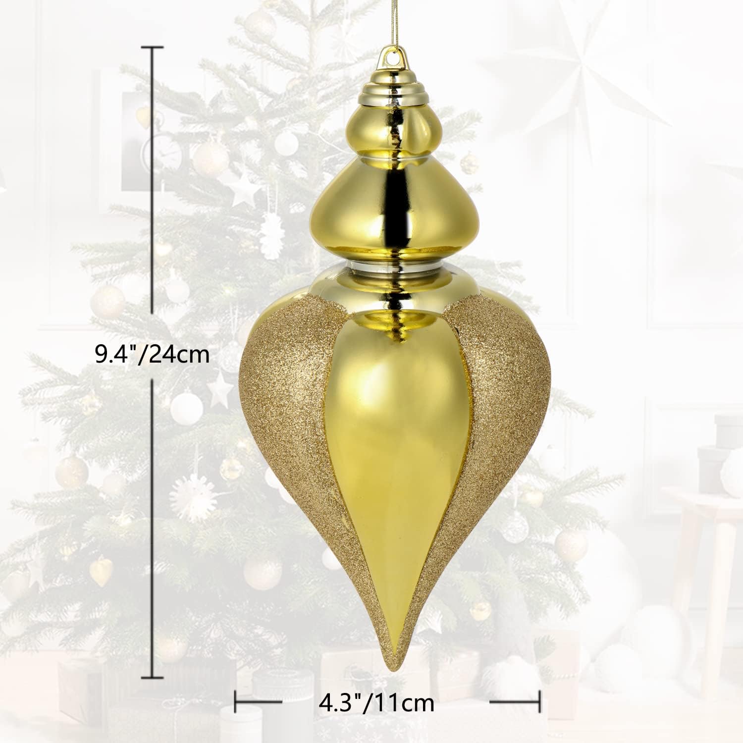 Size and Quantity: The size of the large christmas decorations set is 9″ in Height, which meets the decoration needs of multi-size Christmas trees. It is a 2-Piece set, which is very suitable for any normal size tree.Our Plastic Christmas Ball Ornaments collection includes 3 different colors xmas balls for your choice to meet any themes of your Christmas décor.
