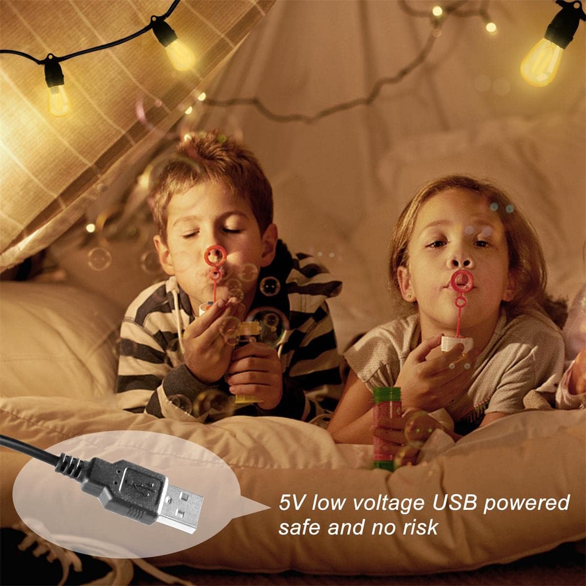 💡【Waterproof, Weatherproof, Shatterproof】The lightweight USB string light use commercial grade insulation to keep water out. This set also has strong plastic bulbs, so even if they knock into trees, they continue working fine without smashing like glass. Outdoor strings lights even continued working fine after a hurricane.