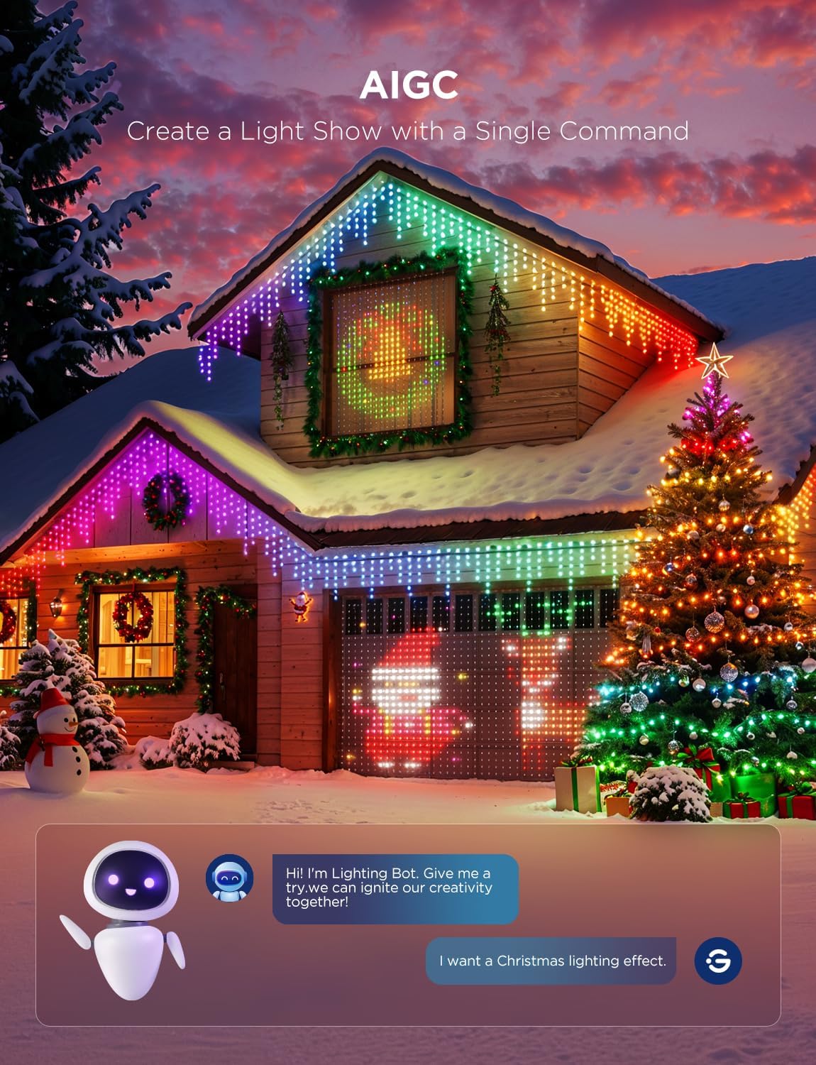 AI Light Show: With 78+ group-controlled scene modes and innovative DIY functions, Govee lights apply AI to generate lighting effects by images or AI Bot. Embrace a colorful world of lights with limitless creativity and scene creation.