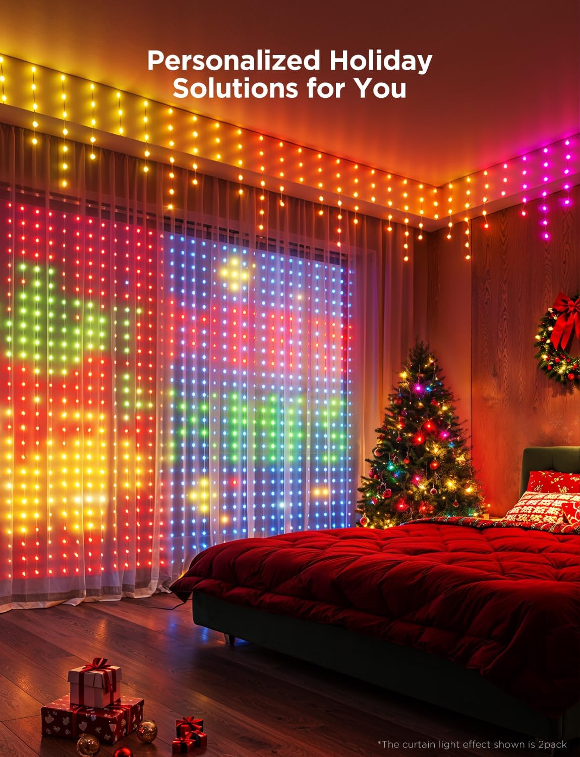 Fantastic Christmas Gift Set: Govee Holly-Jolly Christmas Bundle, includes 4.9 × 6.6ft Govee Curtain Lights H70B3, 99ft Govee Christmas Lights H70C5 and 33ft Govee Icicle Lights H70D1. Designed for Christmas gifts, perfect for home Christmas decoration.