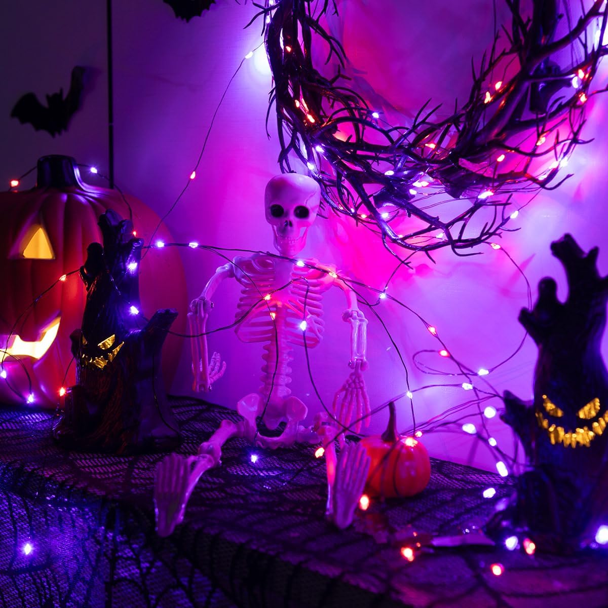 Purple and Orange Halloween String Lights: The halloween string lights is composed of 300 orange and purple LEDs . 100Ft flexible copper wires allow you to twist the lights into any shape or position you would want, be your own designer to shape it as you like.