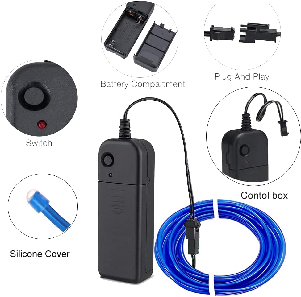 [Flexible and Cuttable EL Wire] The neon electroluminescent wire is soft and thin, easy to bend into any shape (requires additional tools to fix the shape), and can be cut to any length. This LED strobe light strip is energy-efficient and eco-friendly, capable of adjusting the ambient atmosphere and creating a unique and novel feel.